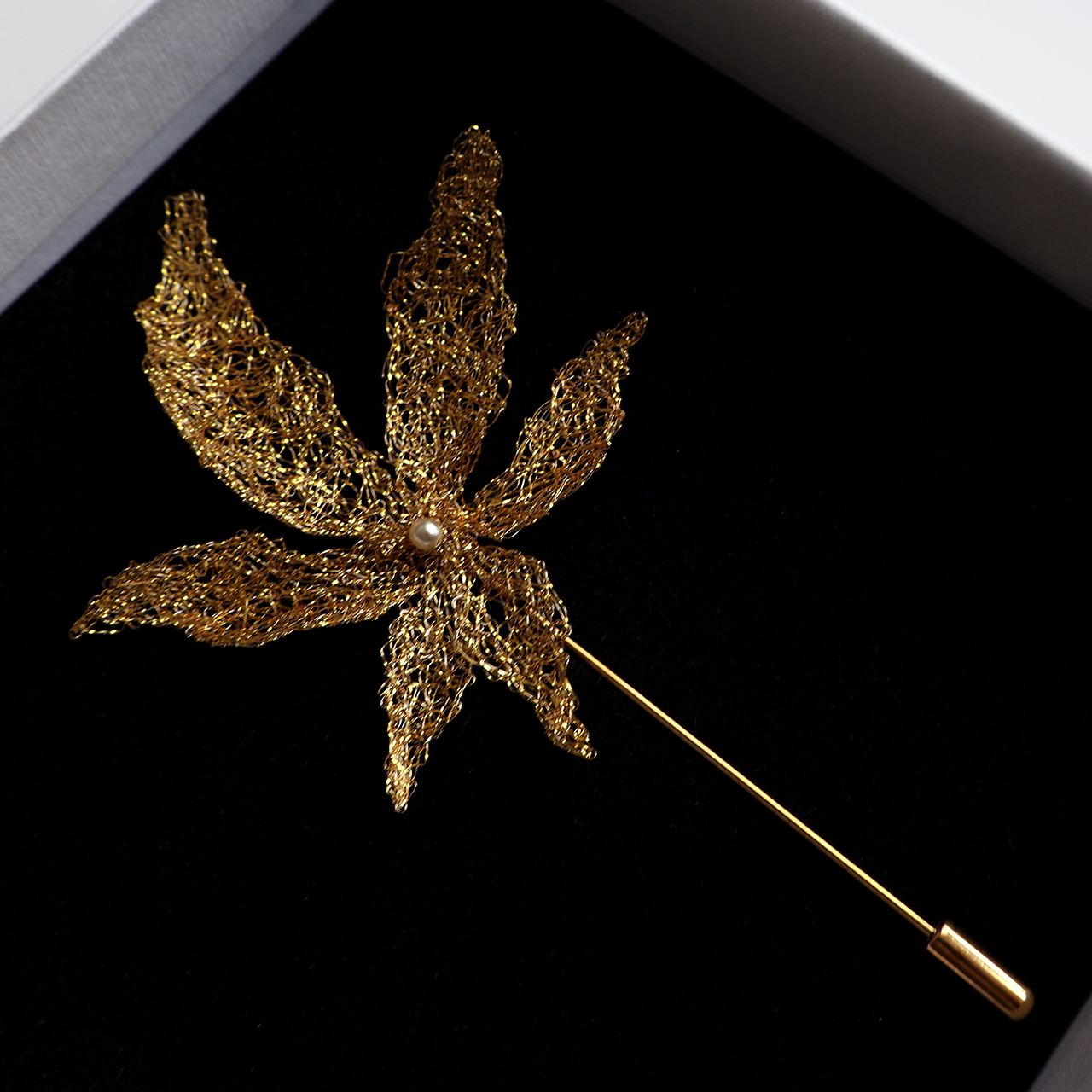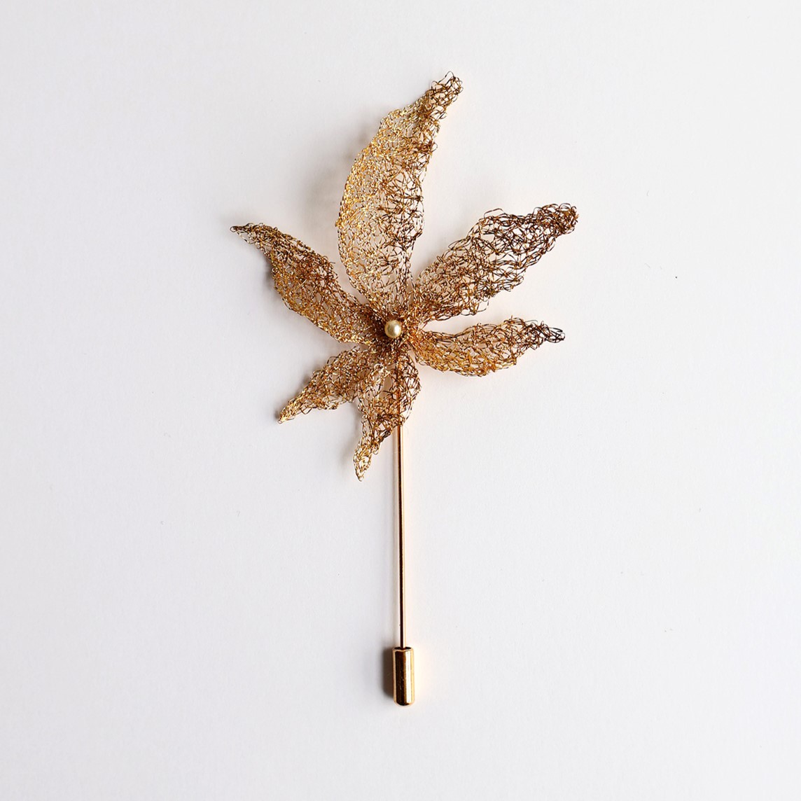 Adoptez la boutonnière Eole 1 pour ajouter une touche dorée à votre tenue.