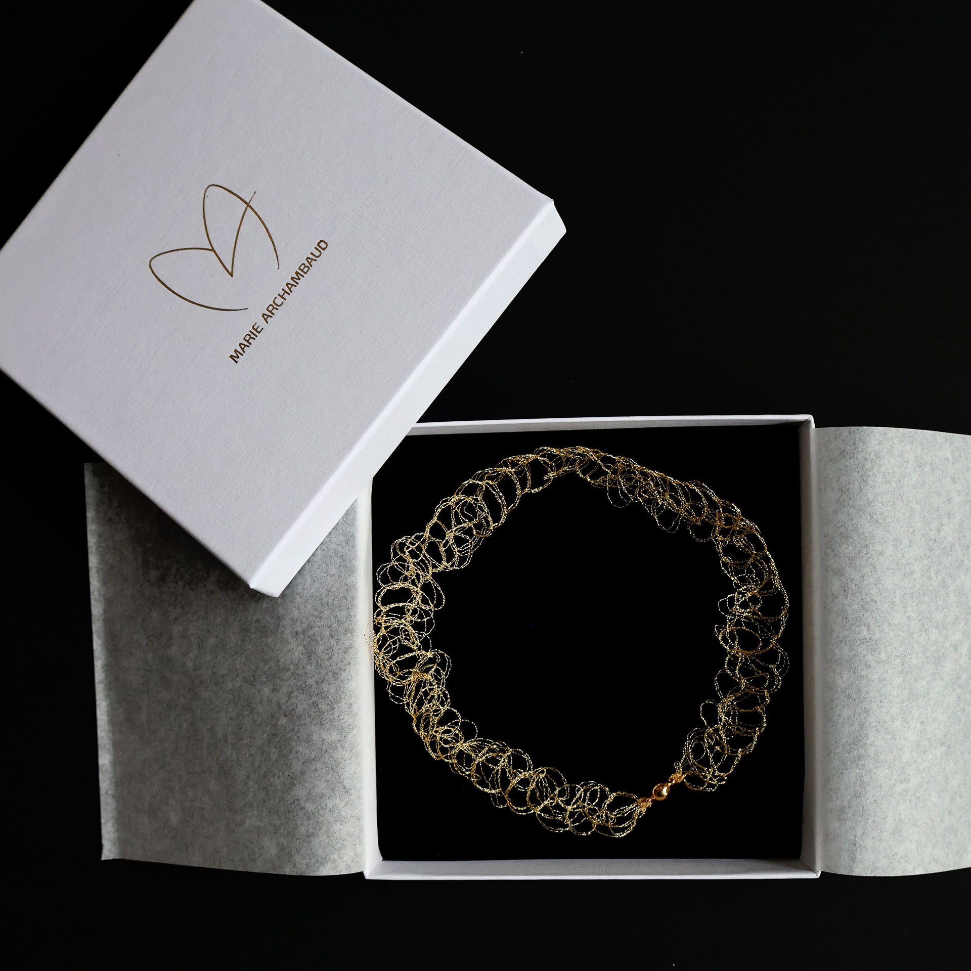 - Cuivre vernis à l’or, fermoir aimanté en laiton doré à l’or fin